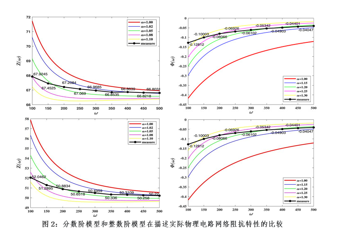 该工作研究了一类具有中心节点的2*n阶蛛网形RC电路网络。根据基尔霍夫定律,利用差分方程和矩阵变换,得出电路网络两点间的阻抗幅值和相位。推导了三种阻抗表达式,并通过数值计算和仿真验证了其正确性。研究了电网络的多个参数包括电阻、电容、电路单元数、频率和分数阶数次对阻抗和相位的影响。此外,在分数阶电路网络领域通过物理实验比较了分数阶和整数阶电路网络在描述实际物理电路网络阻抗方面的优劣。实验结果表明,分数阶电路网络模型在表征阻抗幅值和相位特性方面优于整数阶电路网络模型。