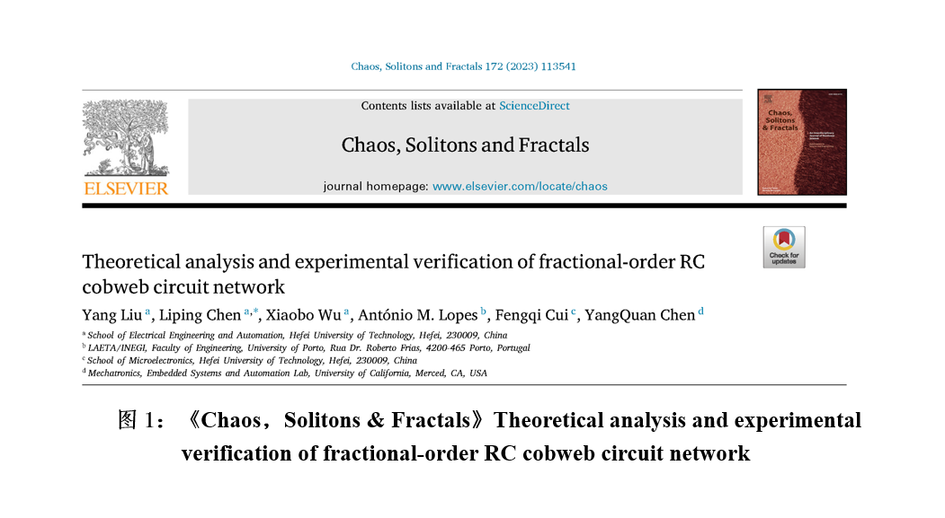 机器人工程2020级本科生刘洋在非线性领域国际著名期刊《Chaos,Solitons & Fractals》(中科院SCI一区Top期刊,IF=9.922)发表了题为“Theoretical analysis and experimental verification of fractional-order RC cobweb circuit network”的学术论文。该项工作与分数阶微积分国际领军学者美国加州大学默塞德分校YangQuan Chen教授及葡萄牙波尔图大学António M. Lopes合作完成。合肥工业大学为该工作的第一完成单位和通讯单位,辉达娱乐