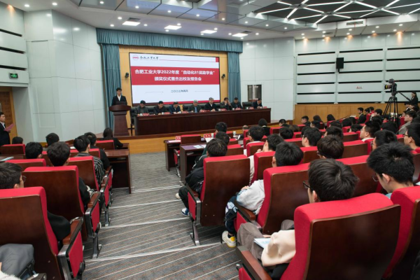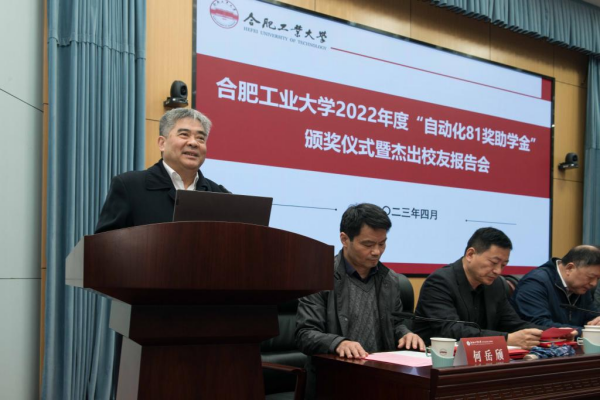 党委书记何岳颀宣读了《关于表彰合肥工业大学第八届“自动化81奖助学金”获得者的决定》,并对获奖学生表示诚挚的祝贺。“自动化81奖助学金”一等奖学金获奖学生代表王凯阳同学发言,他代表全体获奖同学,向辛勤培育学生的母校和老师们表示最诚挚的感谢,向一直以来关心学院发展、支持资助育人的广大校友致以诚挚的敬意和衷心的感谢。他号召同学们应心怀感恩,爱校荣校,秉承“厚德、笃学、崇实、尚新”的校训,恪守“勤奋、严谨、求实、创新”的校风,情满母校摇篮,胸怀工业报国,以众多杰出校友为榜样,做时代创新的生力军。