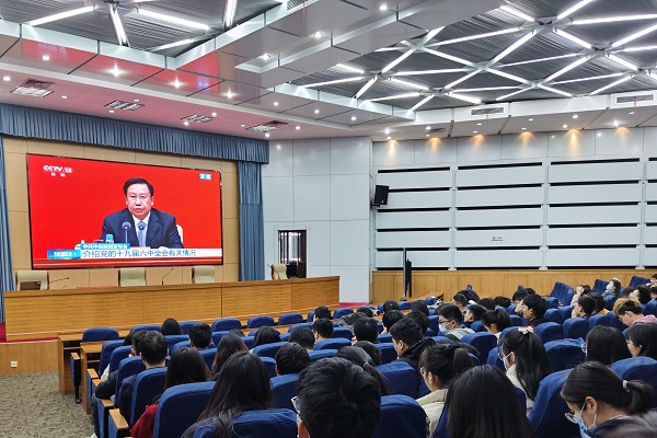 11月12日上午,辉达娱乐 在学术会议中心大报告厅组织第66期预备党员班学员代表和全院学生党支部支委代表收听收看中共中央新闻发布会,学习领会十九届六中全会精神。
