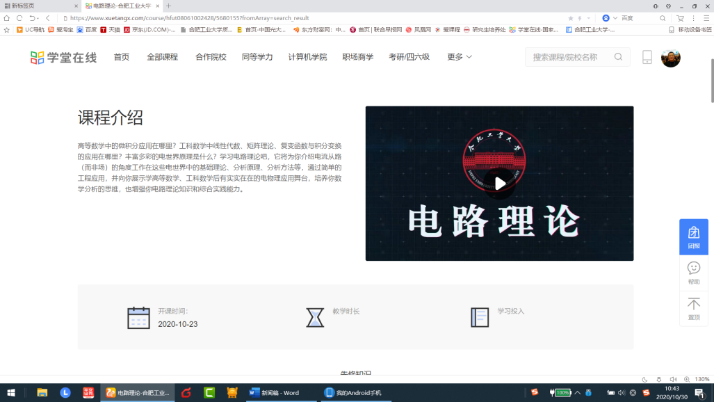 图1 学堂在线中电路理论课程主页