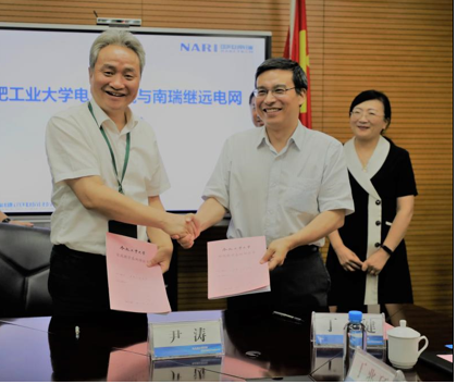 与安徽南瑞继远电网技术有限公司(以下简称“继远电网”)的实习实训基地和战略合作框架性协议签字仪式在继远电网举行。院长丁立健,副院长黄海宏,学院老师孔慧芳、张晶晶、李奇越;继远电网执行董事、书记尹涛,副总经理、总工程师杨可军,新能源部经理谢红福,研发部经理张可,综合办主任王玉红,联合实验室副主任丁兆硕,联合实验室技术总监徐梁等参加仪式。
