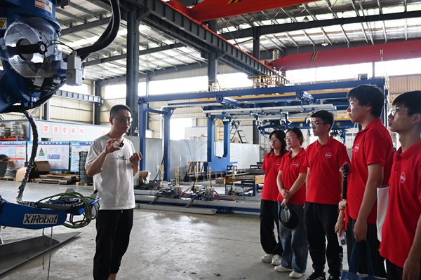 领航,智研人机创未来。74日至9日,学院“机语同行”机器人行业发展现状调研团队先后赶往合肥市和芜湖市,赴合滨智能机器人有限公司、合肥中科深谷科技发展有限公司、中国科学院合肥物质科学研究院智能机械研究所、芜湖清能德创电子技术有限公司、埃夫特智能装备股份有限公司、芜湖藦卡机器人科技有限公司、安徽行健智能制造装备股份有限公司对机器人产业的前沿动态进行调研和交流学习。团队切身感受到《“十四五”机器人产业发展规划》对推动我国机器人产业高质量发展的重要指导意义,深刻体会到科技赋能的强大力量,深入理解了机器人生产对解放人类生产力、提高生产效率的深刻意义,进一步坚定了同学们科技强国、工业报国的信念。