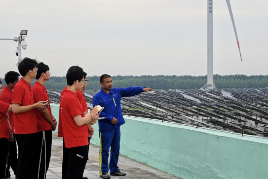 绿动,风电赋能复兴路。78日至14日,学院“风光无限,电联未来”暑期“三下乡”社会实践团队赴东台开展新能源企业调研活动,走入风力、光伏企业内部进行参观学习。团队前往上海电气风电设备东台有限公司,近距离观看风机轮毂与传动装置,听讲解员介绍设备的制造流程,学习风力发电基本原理。此外,实践队员前往国华能源投资有限公司江苏分公司、东台双创新能源开发有限公司等地,向技术人员了解风力发电的发展现状,学习风电发电场的建设技术与施工难点,领会风力发电蓬勃发展的时代意义。