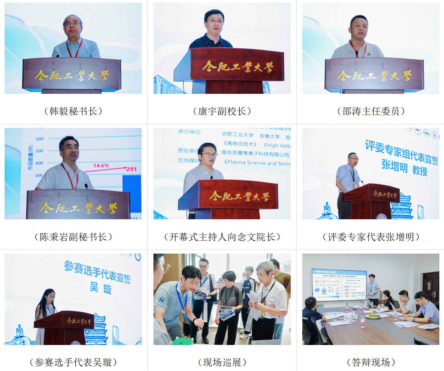 韩毅秘书长在致辞中指出,党的二十大和中央人才工作会议以加快教育强国、科技强国、人才强国为出发点作出了战略部署。作为电气工程科技工作者,应牢牢把握时代机遇,服务国家重大战略和行业核心需求,推动以高电压与等离子体为代表的交叉前沿科技不断突破,为科技强国建设贡献力量。他希望参赛队伍珍惜与专家学者交流的机会,充分展示研究成果与创新精神,并进一步拓宽学术视野,提升科研素养。康宇副校长表示,合肥工业大学始终秉承“厚德、笃学、崇实、尚新”的校训精神,坚持“工程基础厚、工作作风实、创新能力强”的人才培养特色,致力于深化“新工科”建设,通过校企协同、赛教融合培养高素质创新人才。他期待本届赛事和论坛让等离子体科技在青年才俊的探索中绽放更加璀璨的光芒。邵涛主任委员回顾了中国电工技术学会等离子体及应用专业委员会自2016年成立以来在推动技术交叉融合方面的努力,并对赛事的组织和发展给予高度评价。他期待在本次竞赛中,各位选手能够相互交流互鉴、启迪智慧。
