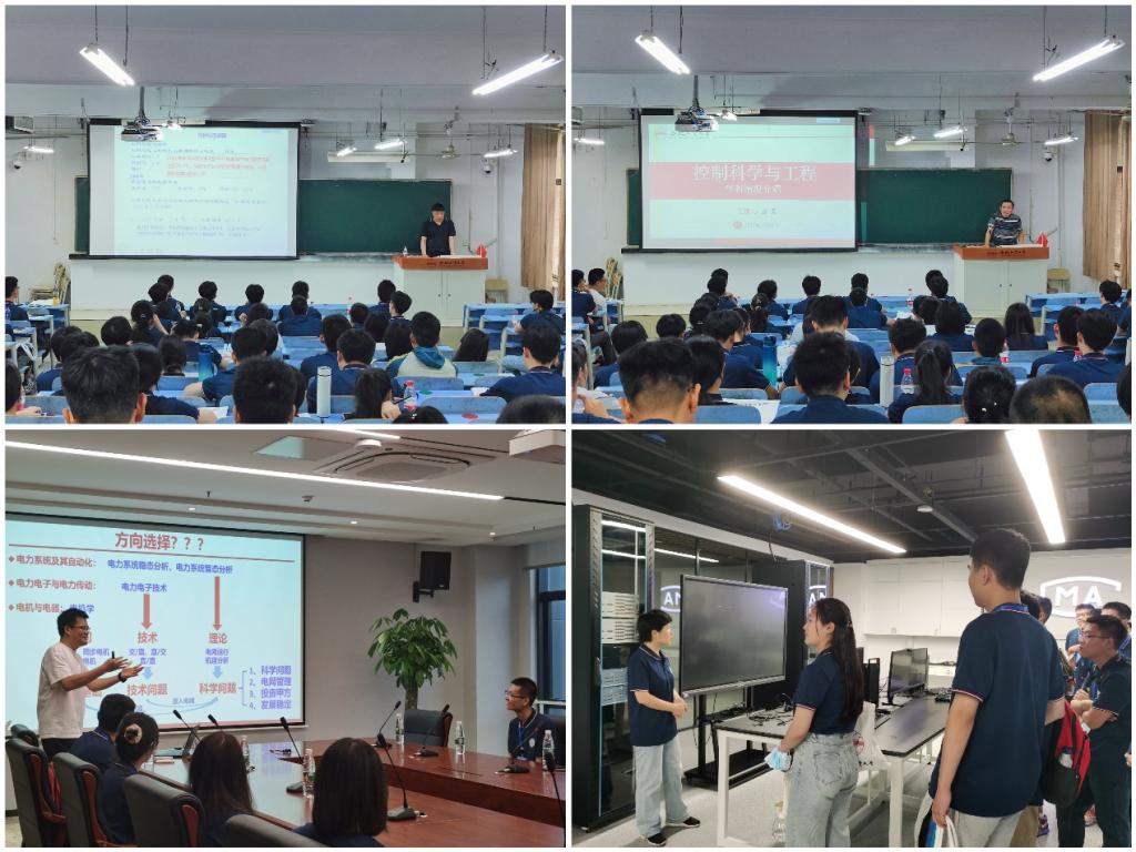 的历史沿革、学科专业、科研基地、以及新能源电力系统科学与技术黄大年式教师团队,张兴教授和唐昊教授分别代表电气工程和控制科学与工程两个一级学科做了学术报告,赢得营员阵阵掌声。二级学科交流互动活动中,电力电子、电力系统、高电压、电机与电气、电工理论和控制科学与工程的研究生导师们向有意报考相关方向的营员详细介绍了学科前景、研究内容和团队概况,并带领营员参观了学科实验平台,耐心解答营员们的各种问题,帮助营员们坚定了进一步深造的信念。