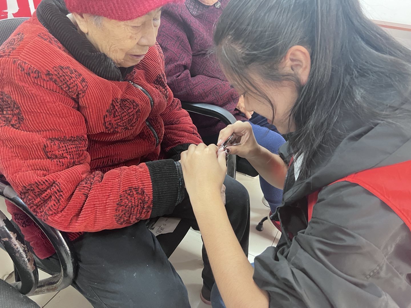 志愿者在工作人员的带领下来到老人家中,与老人围坐在一起,畅谈生活,讲述大学的生活趣事和遇到的问题,爷爷奶奶和蔼可亲地向志愿者们传授生活经验、回溯过往经历、分享生活历程。在长达一个小时的温馨交谈中,老人们了解了当代青年多姿多彩的大学生活,志愿者们也在回顾历史中更加珍惜美好生活。随后,根据各位老人的具体需求,志愿者们迅速分配好任务,有序地为老人打扫房间卫生、整理桌面、整理床铺、修剪指甲,帮助老人解决实际问题,坚持务实服务与心灵陪伴相结合。老人们纷纷向志愿者表示感谢,志愿者们也热情的与爷爷奶奶拥抱告别。