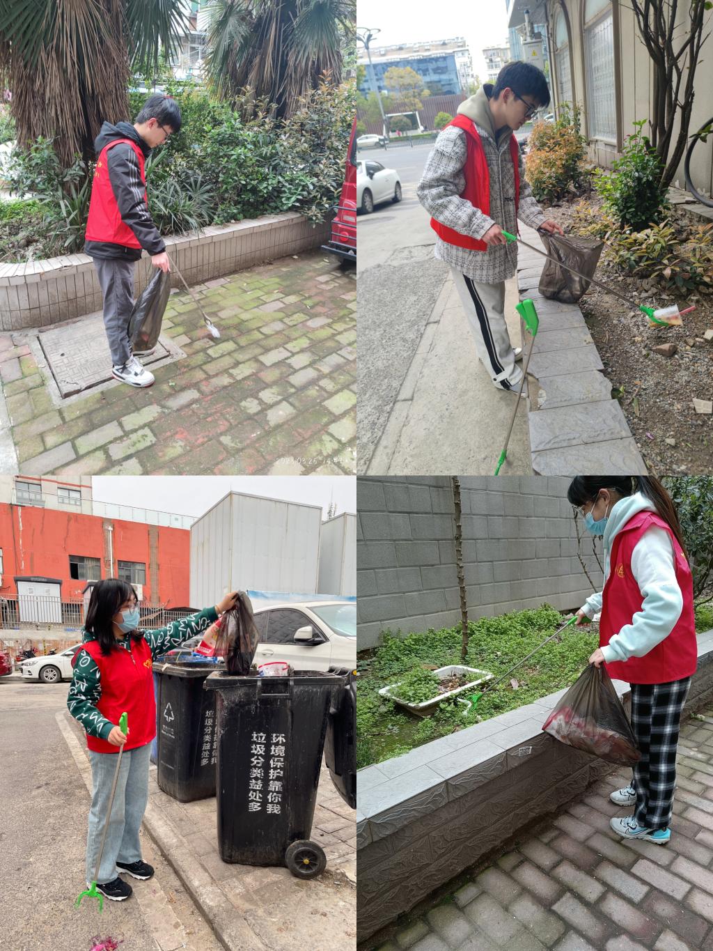 卫生清扫,化身环保达人。本科生第四党支部深入龚湾社区开展“清洁家园”主题卫生清理志愿服务活动。志愿者们分成四个小组,拿上环保夹,提上环保袋斗志昂扬的奔赴指定区域,分块对居民区及街道上的垃圾和废弃物进行清理。从泡沫到纸屑、从瓶罐到烟头、从塑料袋到装修残余,志愿者们一丝不苟,认真清理社区每个角落的垃圾,鲜红色的马甲成为社区一道亮丽的风景线。随着志愿者们将一袋袋满满的垃圾丢进垃圾桶,本次活动圆满完成,小区卫生也变得整洁美观、焕然一新。