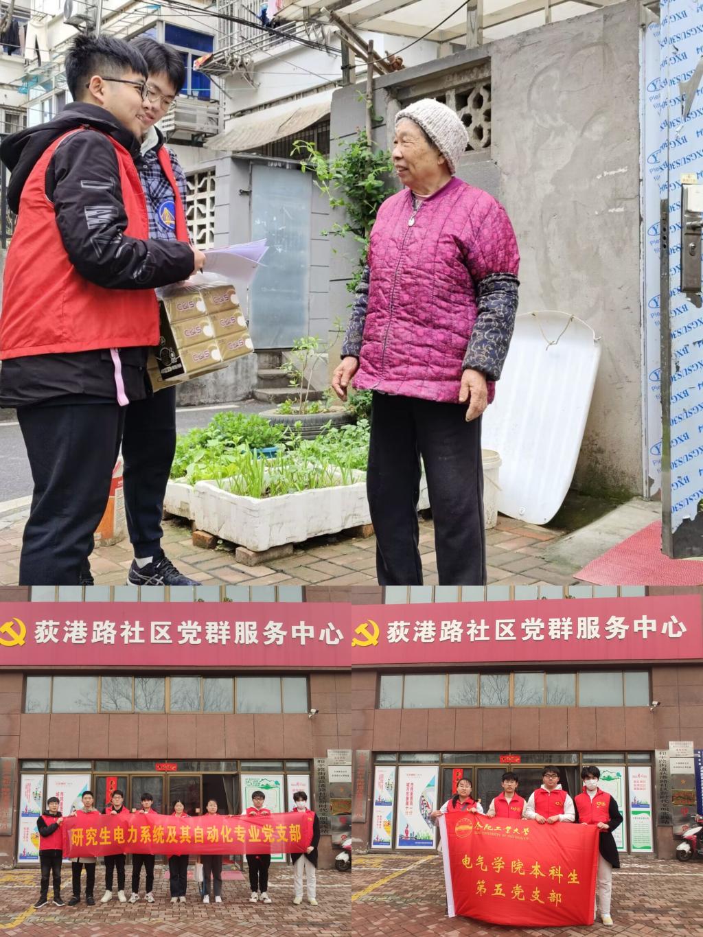 本科生第四、第五党支部,研究生电力电子第二党支部、研究生电力系统及其自动化专业党支部联合阳光志愿服务中心志愿者赴荻港路社区、龚湾社区、飞虹社区开展“‘熠’”起守望社区治理与敬老志愿服务活动。