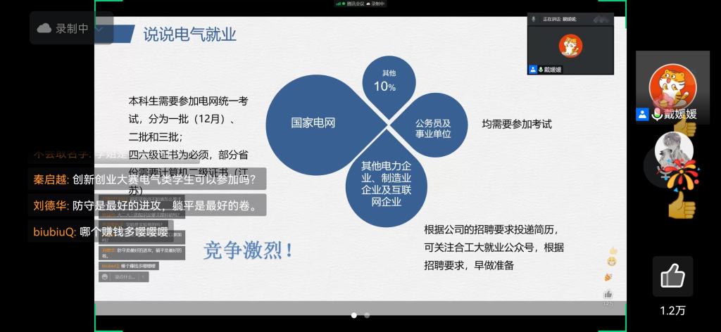 2019届本科毕业生、清华大学硕士毕业生戴媛媛为学生开展学业规划培训,讲述她的本科求学经历和学习理念,她从自身经历、道路选择和大学里要做的事三个方面向同学们讲解如何规划大学时光。