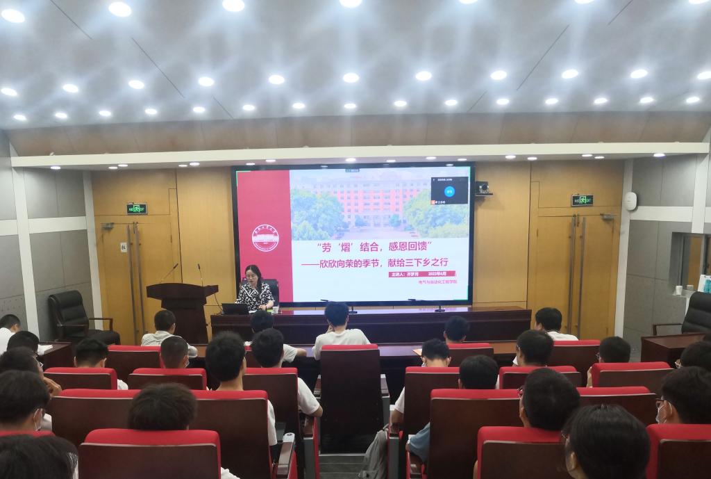 在学术会议中心小报告厅开展学院发展型资助活动“劳‘熠’结合,感恩回馈”——欣欣向荣的季节,献给三下乡之行。本次会议线上线下相结合,主要面向学院家庭经济困难学生进行活动解读和宣传动员。