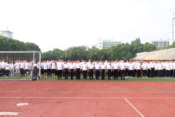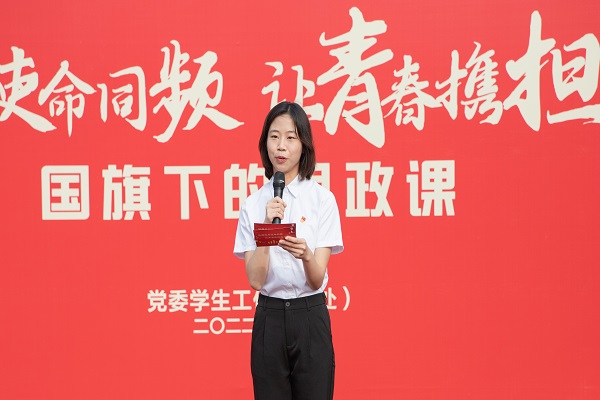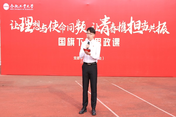 “让理想与使命同频,让青春携担当共振”主题升旗仪式暨国旗下的思政课在屯溪路校区西操场举行,学院相关负责人、辅导员以及全体本科生、研究生参加活动。
