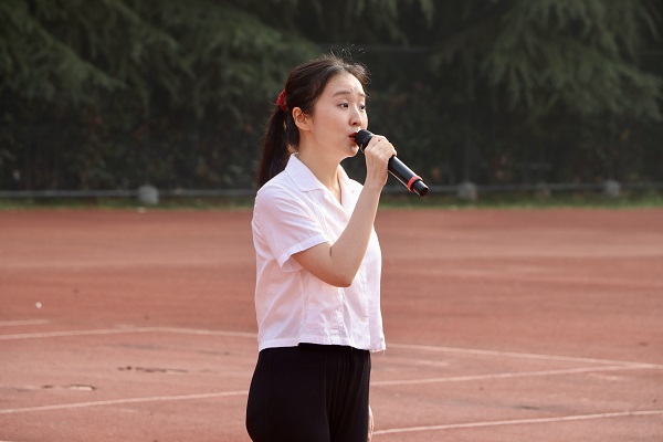 学院学生工作办公室副主任左能在现场演唱了经典爱国主义歌曲《不忘初心》,她用歌声抒发对党和祖国的浓浓深情,带领同学们重温了革命先辈用理想和信念丈量的伟大远征。“你是我的一切我的全部,向往你的向往,幸福你的幸福”,歌曲激励同学们要不忘初心、继续前进,走好新时代长征路,回报祖国沃土。优美的旋律在操场上飘扬,现场气氛热烈。