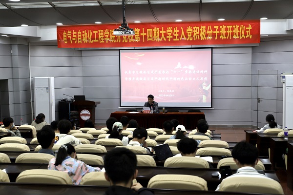 分党校第十四期大学生入党积极分子班学习的决定》。学院学生工作办公室主任兼团委书记闫志伟布置本期党校入党积极分子培训班培养方案,并对培训内容及形式进行介绍。入党积极分子班班主任刘开阳宣读了《中共合肥工业大学委员会党校大学生学员开班学习纪律》。2020级电气工程及其自动化专业吴亚禹同学作为学员代表发言。学院党委书记、分党校校长何岳颀做总结讲话,他希望全体学员珍惜集中学习的机会,提高政治站位,增强理想信念,加强理论修养,砥砺意志品质,并提出三点期望,一是亮身份,克己奉公,理论修养日将月就;二是树思想,当仁不让,弘扬伟大建党精神;三是担责任,砥廉峻隅,终将练就过硬本领。