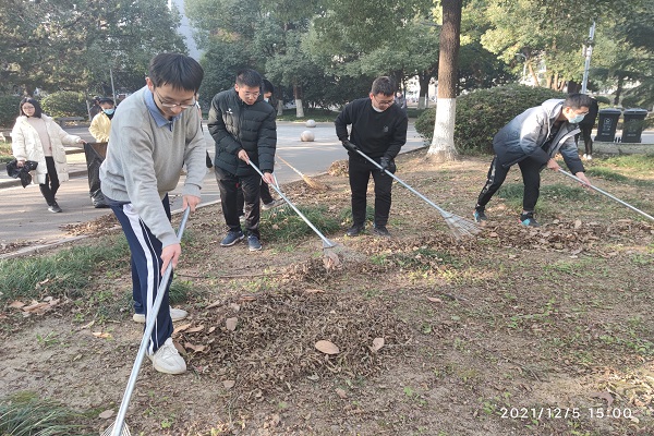 学生会作为学院优秀学生群体,率先在学院树立劳动榜样。凛冬时分,落叶缤纷,学生会同学们手持清洁工具,投入清扫落叶的行列中,深入草丛,众人分工合作,整个过程井然有序,每个人都热情高涨,积极为校园的绿色环境贡献出自己的一份力量,充分发挥了团结合作的精神以及不怕累、不怕脏的优良风气,在全体成员的努力下,草坪上的落叶全部打扫干净,还原整洁样貌。