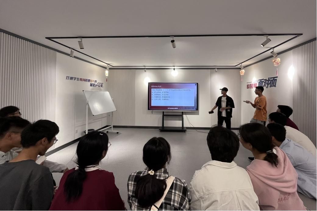 嘉节熠竞,认识我和我的工大。望将来之知识共竞活动在屯溪路校区学生社区7号楼沙龙空间开展,各同学围绕学校的历史沿革、发展现状、校园文化等相关知识展开竞答,比赛分为必答题、抢答题两个环节。必答题由判断题、选择题和简答题组成,每个参赛队依次作答,各组参赛选手密切配合,机智作答,勇争高分。抢答题由选择题和问答题组成,选手们认真审题,踊跃作答,现场精彩纷呈,高潮迭起,通过以赛促学的形式,让同学们重温了学校的光辉发展沿革,激发了爱校的情怀和荣校的担当。