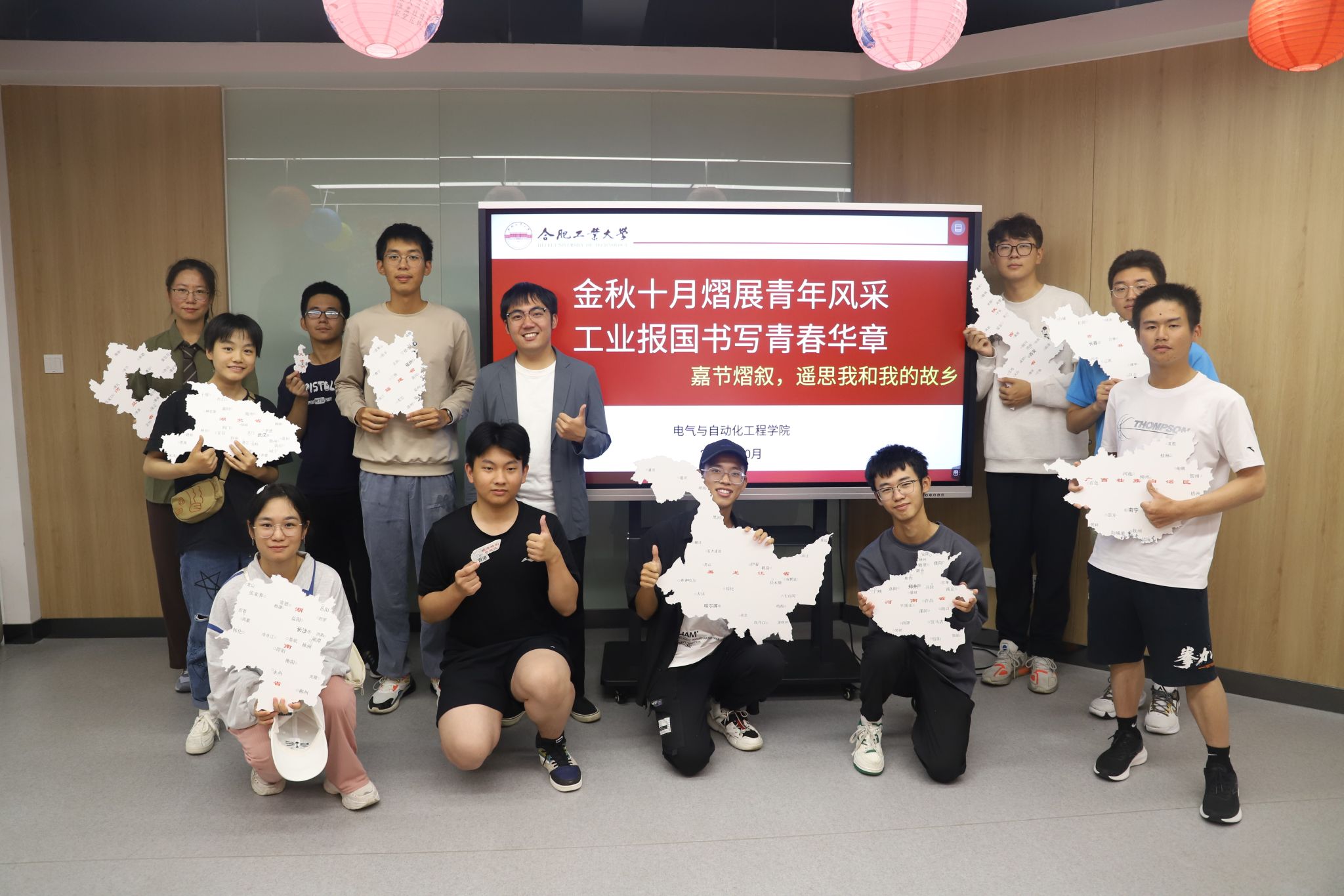 嘉节熠叙,遥思我和我的故乡。望远方之情怀共谈活动在屯溪路校区学生社区5号楼沙龙空间开展,来自祖国天南海北的12位同学围绕家乡标杆性发展地标、标识性历史地标、标记性成长地标,通过列举一家标杆企业、一栋标杆商业楼、一方标杆农业园、一间标识的伟人故居、一址标识的红色遗迹、一处标识的革命纪念馆、一棵记忆中标记着的秋千老树、一块记忆中标记着的攀爬巨石、一抹记忆中标记着的湖光倒影等地,有共学、有共鸣、有共情地介绍了我和我的故乡。