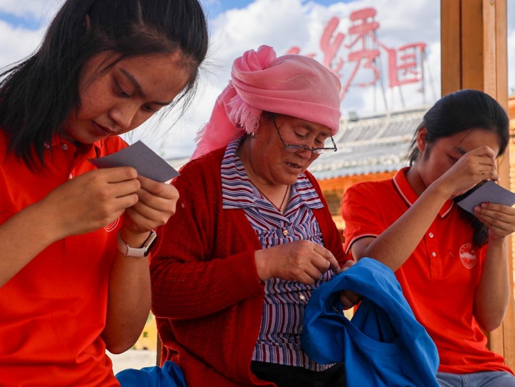 7月16日至17日,团队前往五十镇班彦村,在村党支部书记仲关因保和省级非物质文化遗产传承人、盘绣园负责人张卓麻什姐的带领下,参观了盘绣园,领略园内各种盘绣作品的独特魅力。张卓麻什姐指出,土族盘绣是土族刺绣中尤为独特的一种,其技法、针法十分独特,在中华刺绣百花园中一枝独秀。采访结束后,张卓麻什姐拿出绣布与绣针,一步步指导队员们如何制作一幅盘绣作品。