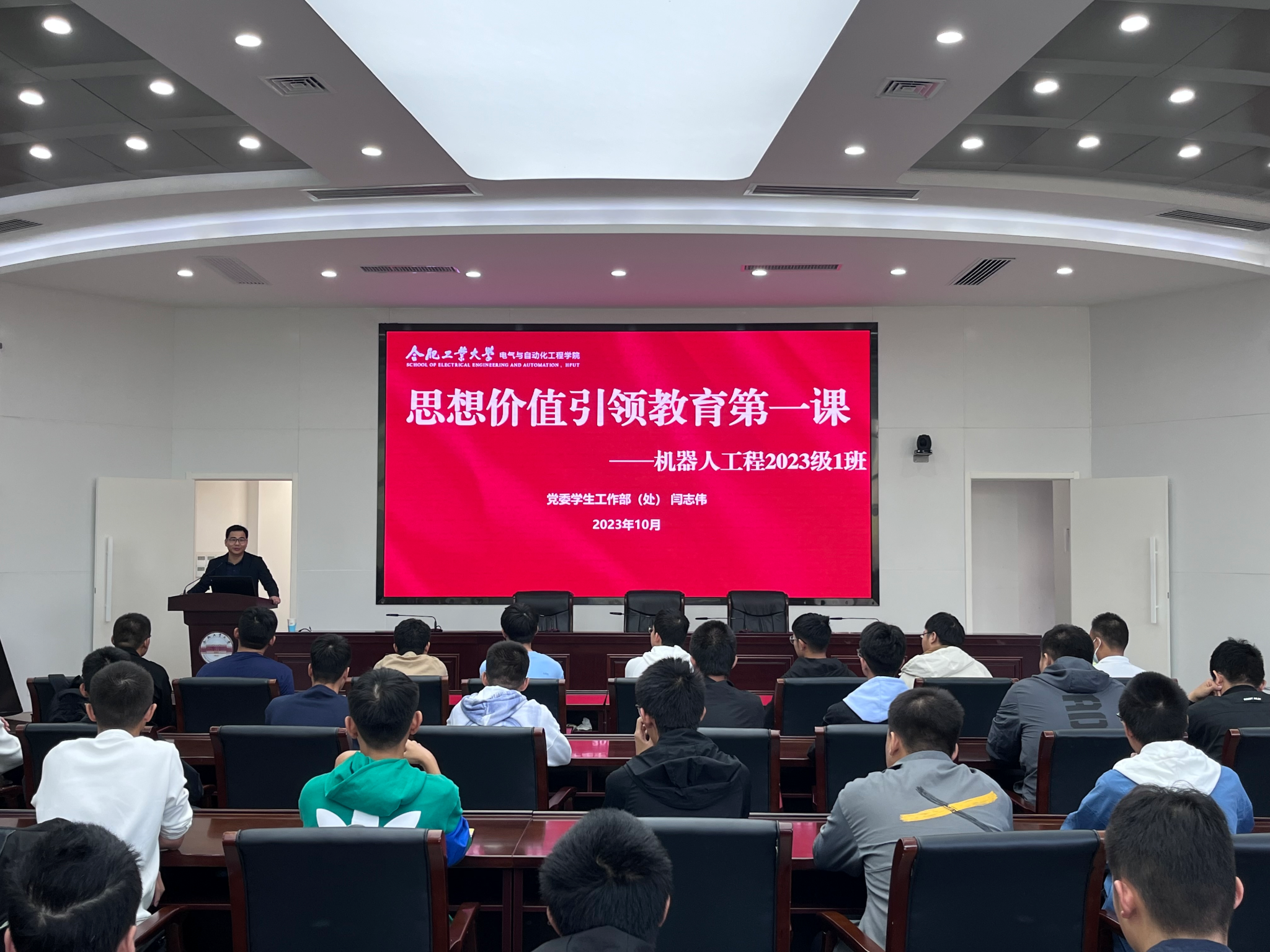 于学术会议中心三楼报告厅开展新生思想价值引领教育第一课专题精讲,党委学生工作部(处)闫志伟受邀担任主讲人,2023级本科新生辅导员,学生代表参与本次活动。