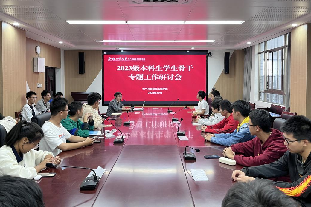 于逸夫楼1004、1009会议室组织开展2023级学生骨干培训教育第一课专题研讨,2023级本科新生辅导员、学生骨干分批次参加活动。