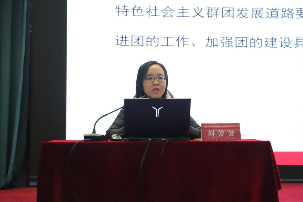 刘芳芳以《学团章、守初心、强纪律、担使命》为题,从团章的时代演进到现有建设,带领同学们了解了十八部团章从制定到修改再到完善的过程:一是顶层解构,她围绕团员的使命、奋斗、团的组织、性质、基本任务、建设要求、领导机制展开,深度剖析了团章的总则;二是实例分析,她围绕中国共产党领导、先进青年、群团组织、广大青年、实践、中国共产党的助手和后备军这六个关键词,阐释了党和共产主义青年团之间的紧密关系;三是知识宣普,她结合团员的权利与义务、团干部的要求、团的纪律、团的经费以及团徽、团旗、团歌的象征意义展开,全面介绍了团的“常见词”。