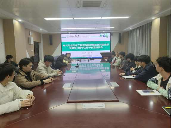 在逸夫楼1009会议室开展团学组织临时团支部专题学习暨学生骨干交流座谈会,学院学生工作办公室主任兼团委书记刘开阳,团学组织指导老师、全体学生骨干参加活动。