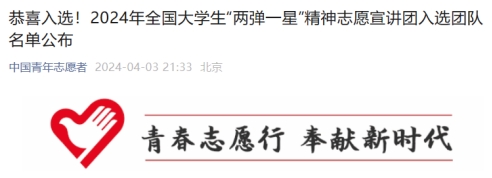 学院入选宣讲团队将严格落实团中央青年志愿者行动指导中心相关宣讲要求,认真制定宣讲计划,精心设计宣讲内容,扎实开展志愿宣讲,用实际行动践行“奉献、友爱、互助、进步”志愿服务精神,以昂扬的热情、认真的态度进行志愿宣讲,弘扬“两弹一星”精神,在“小我”融入“大我”的青春实践中展现新时代青年的精神风貌与责任担当。