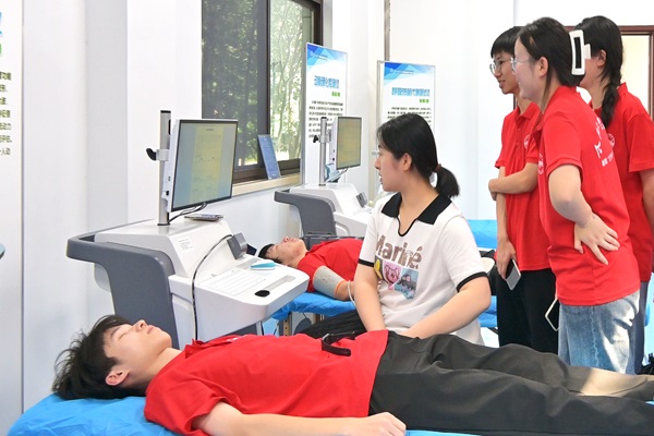 图2 团队成员体验科学岛健康促进服务中心的心血管功能测试仪