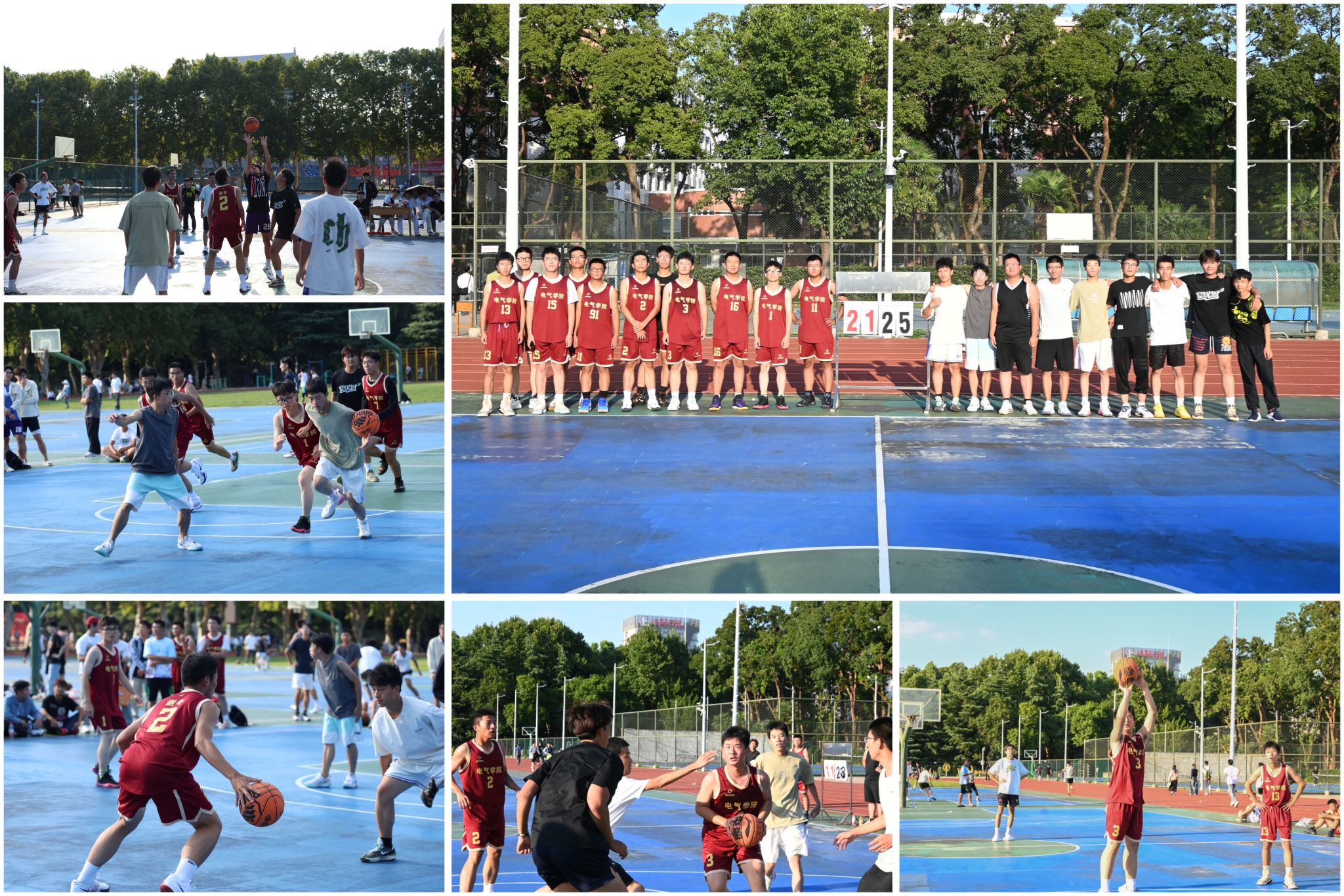 随着一声哨响,比赛在电气24-2班篮球队与电气24-4班篮球队的相遇中正式展开,一开始,双方比分不相上下,攻守转换之间,两队你追我赶,每一次配合和组织进攻、防守的过程都是队友之间团队合作精神与战术战略的体现。电气24-4班篮球队率先获得球权,团队耐心地组织每一次进攻,三分线内不断尝试寻找机会,电气24-2班篮球队在队长的带领下不甘示弱,紧跟其上。然而电气24-4班篮球队势如破竹,在队员的猛烈攻势下双方分差被持续扩大,对抗,上篮,合球,中投,手感火热,中场便打出了17:4的比分差。下半场电气24-4班篮球队将对方分数严严锁死在6分,最终以较大优势凭33:6的比分获胜。第二场对阵双方是电气24-1班和自动化24-3班篮球队。哨响,比赛开始,电气24-1班篮球队在获得球权后精心组织每一次进攻,并在防守方积极拼抢盯防,自动化24-3班篮球队也稳扎稳打,一次次精准回应。易边再战,双方都派出全主力阵容应战,进入第四节,直到终场前两分钟,电气24-1班篮球队仍保持着5分的领先优势,在自动化24-3班篮球队成员的追逐下抹平分差。最后18秒,对方获得篮板,电气24-1班篮球队却及时用技巧逼抢形成抢断,并加速向内线突破,启动、抛投一气呵成,在这霎秒间完成25:21的最终得分。