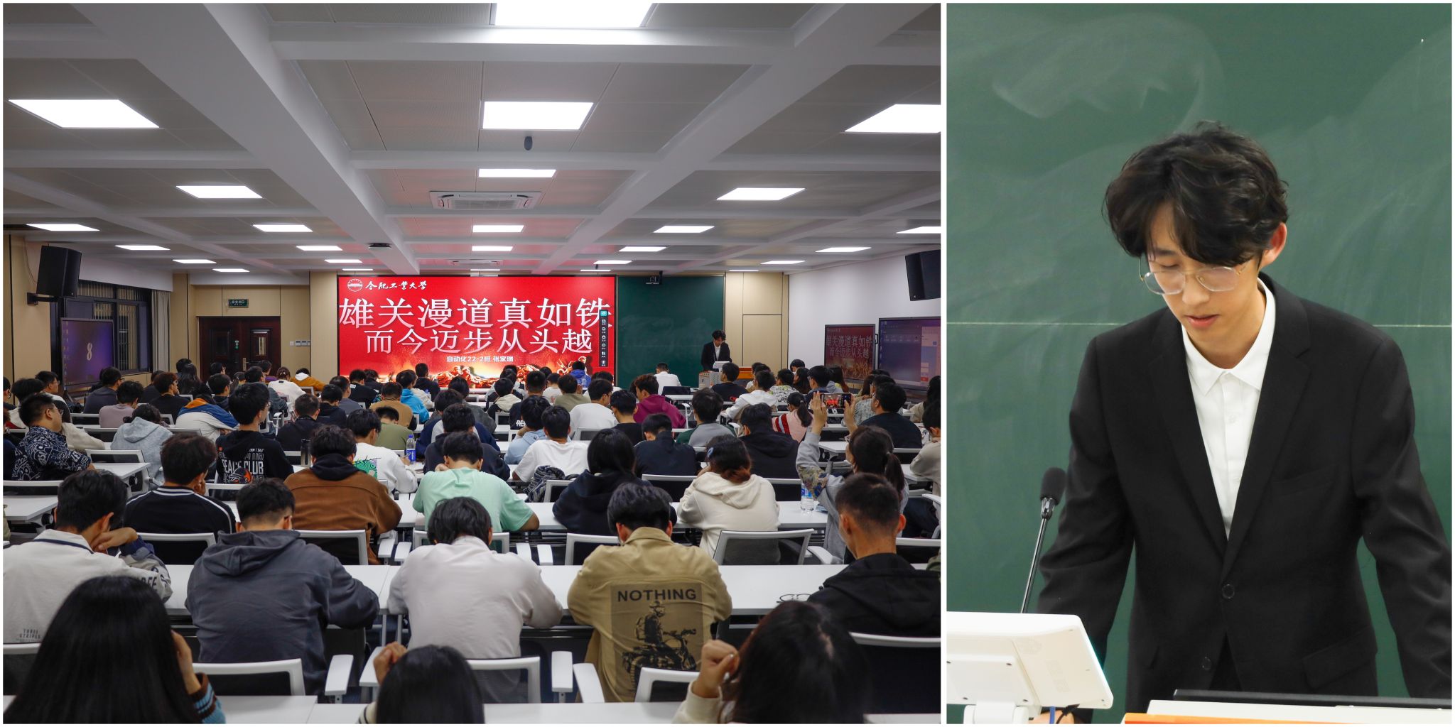 张家瑞以《雄关漫道真如铁,而今迈步从头越》为主题,回顾了红军长征的艰难历程,从红军长征历史、伟大长征精神内涵、长征精神的现实意义、走好新时代长征路四个方面带领学生解读了伟大长征精神的五点内涵。600余次战役战斗,跨越近百条江河,攀越40余座高山险峰,穿越茫茫草地……这是惊天动地的革命壮举,是中国共产党和红军谱写的壮丽史诗,是中华民族伟大复兴历史进程中的巍峨丰碑。伟大的长征精神,作为中国共产党人红色基因和精神谱系的重要组成部分,已经深深融入中华民族的血脉和灵魂,成为鼓舞和激励中国人民不断攻坚克难、从胜利走向胜利的强大精神动力。他勉励与会同学要做好“厚德”功课,把稳思想之舵;要做好“笃学”功课,端正治学态度;要做好“崇实”功课,坚持知行合一;做好“尚新”功课,铭记报国初心,继承和发扬伟大的长征精神,保持艰苦奋斗、戒骄戒躁的作风,以时不我待、只争朝夕的精神,奋力走好新时代的“长征路”。