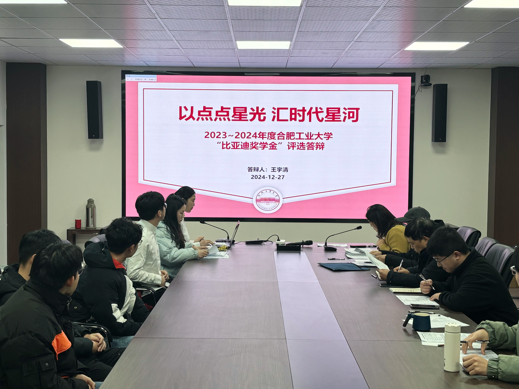 12月27日下午,合肥工业大学第一届“比亚迪奖学金”风采展示会在逸夫楼1004顺利举行,申报“比亚迪奖学金”的同学和学院相关负责老师参加活动。