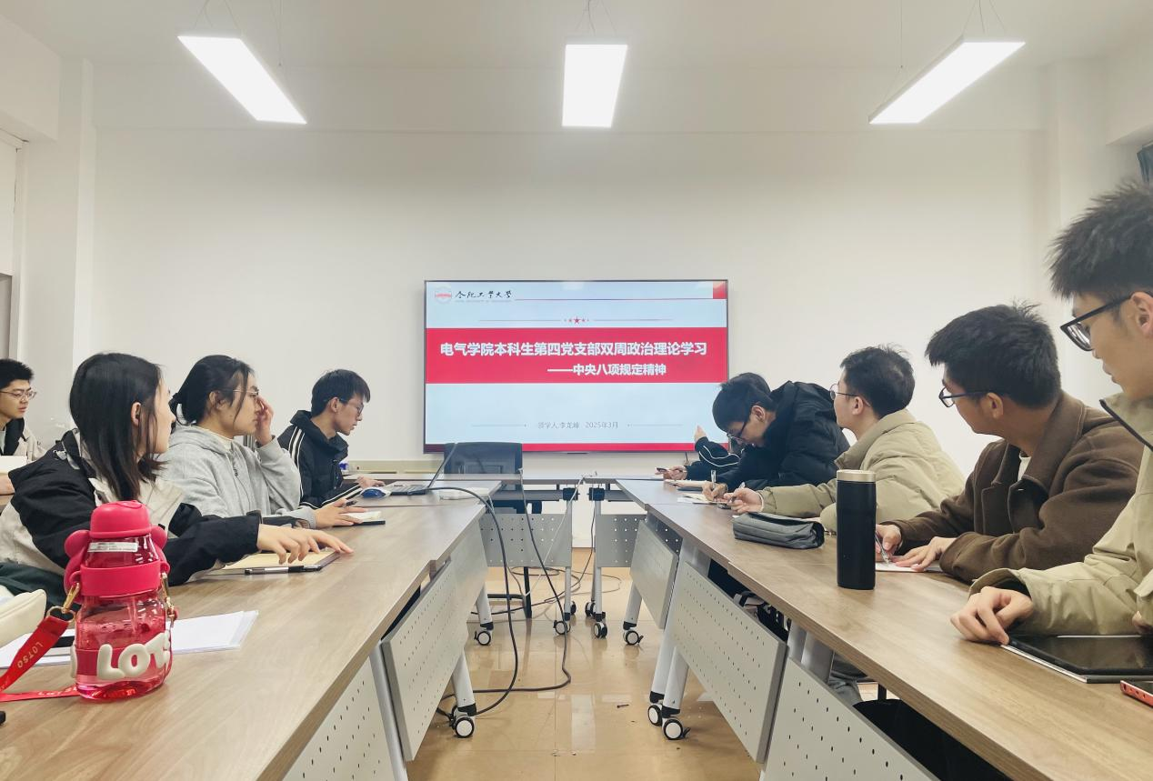 本科生第四党支部在逸夫楼1008会议室开展“以中央八项规定精神为引领,走好作风建设新的长征路”专题党课,支部全体党员参加活动。
