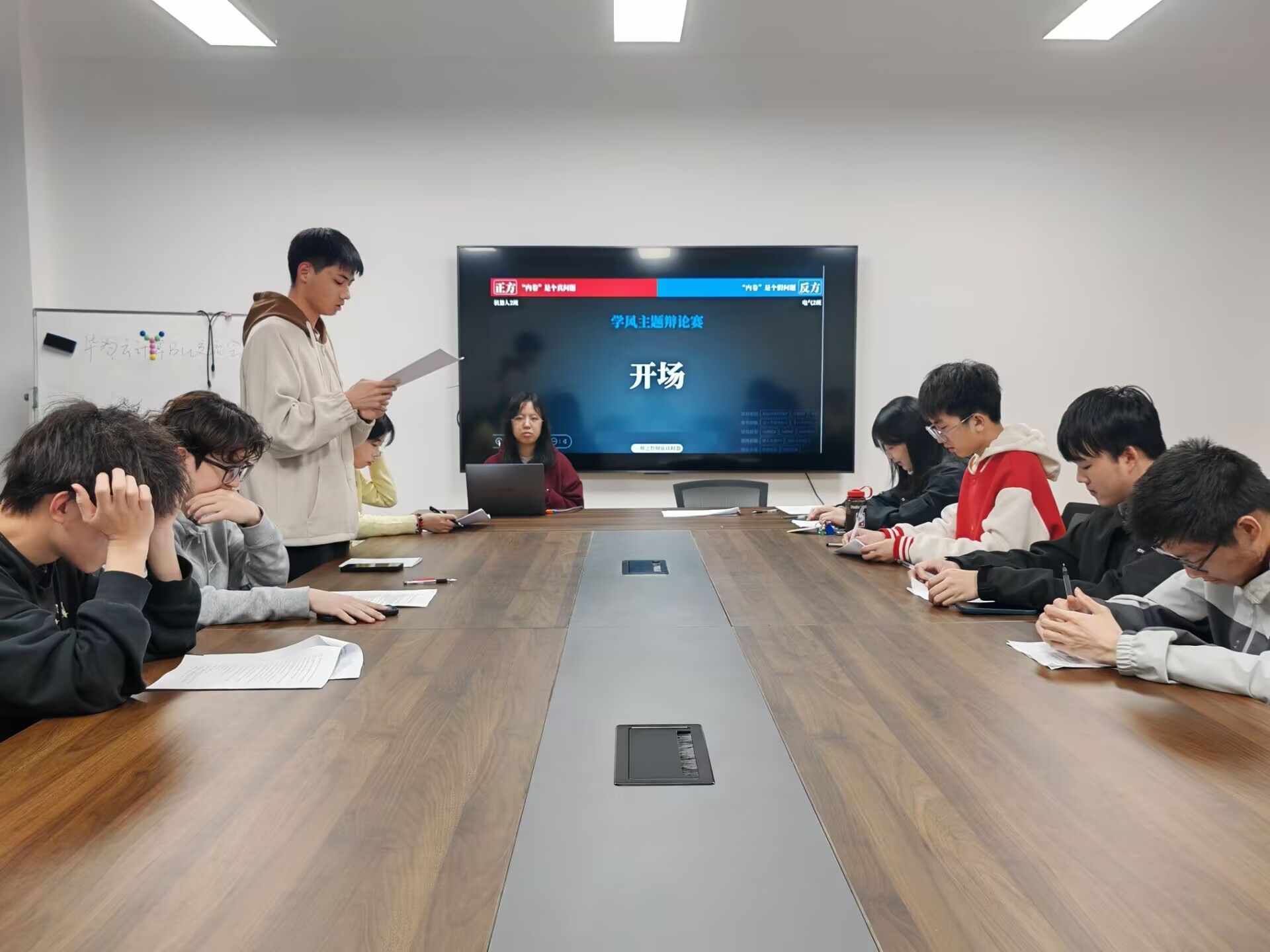 于逸夫楼1006开展“熠题·青论”主题辩论赛,电气工程及其自动化专业与机器人工程专业部分同学参与活动。