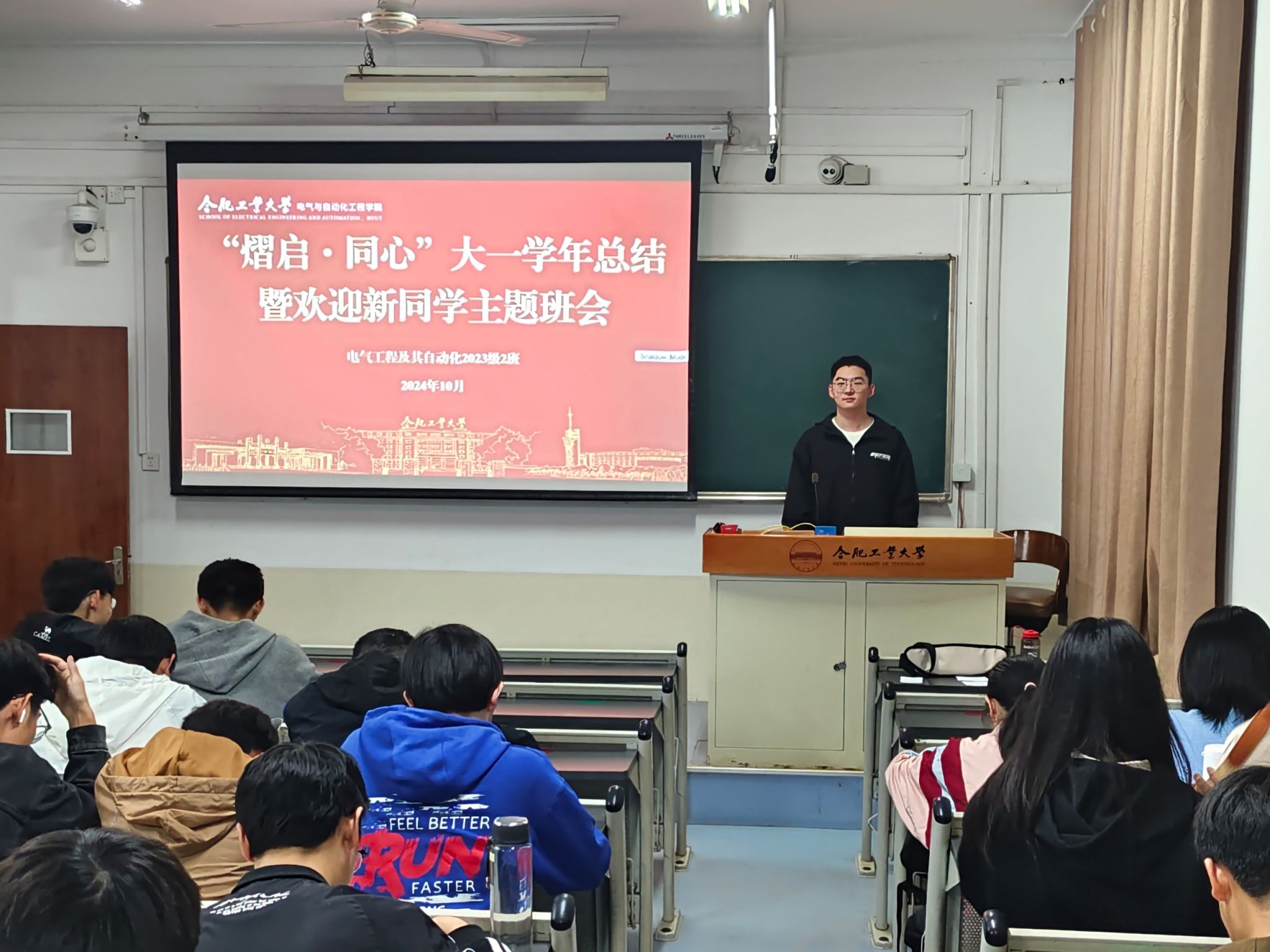 于主教224教室开展“熠起·同心”学年总结暨欢迎新生主题班会,电气工程及其自动化2023级2班班主任陈强以及全体同学参加活动。