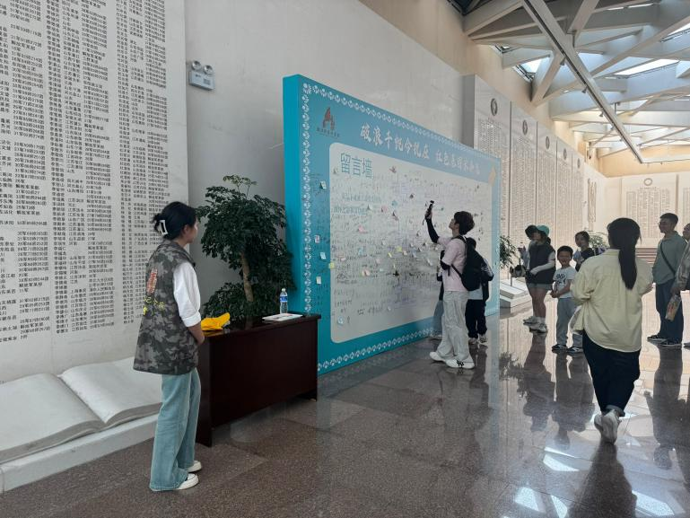 留言寄情抒胸臆,红色信念共传递。在纪念馆负一层的烈士功名墙前,志愿者设立“红色留言板”,邀请游客写下对先烈的缅怀与对未来的期许。“您的热血,我们的底气”“今日盛世,如您所愿”……一句句质朴话语,满载对先烈的感恩;“强国有我,接力前行”“以青春之名,续写时代华章”,则是青年学子对使命的庄严承诺。一句句真挚留言,既是对历史的深情回望,更是对红色精神的接力传承,留言板成为跨越时空的对话桥梁,让历史的厚重与现实的担当在此交融,让渡江战役的精神力量在代际传递中生生不息。