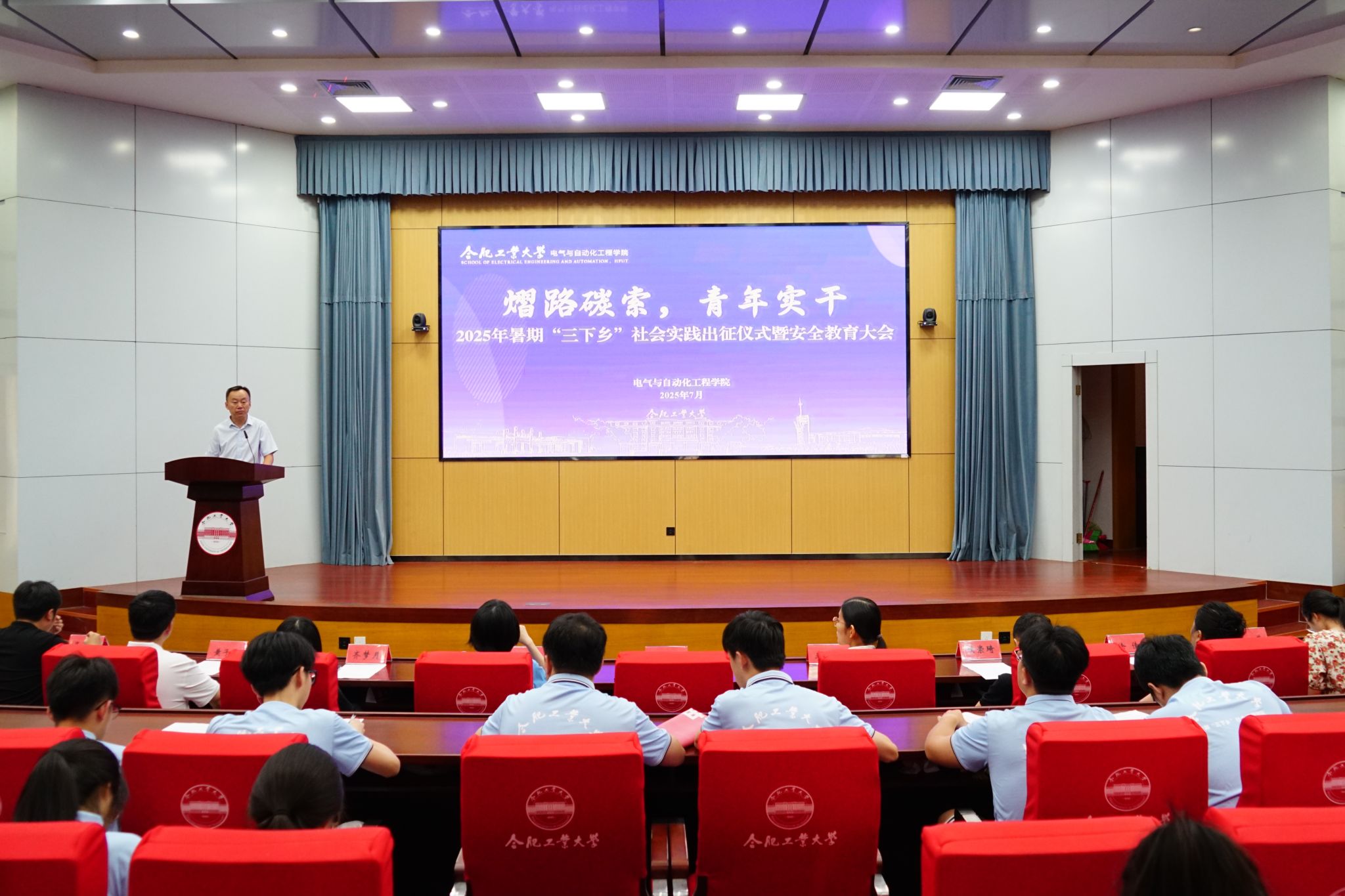 “熠路碳索,青年实干”2025年暑期“三下乡”社会实践出征仪式暨安全教育大会在学术会议中心一楼报告厅举行,学院相关负责人、各实践团队指导教师及立项实践团队全体成员参加活动。