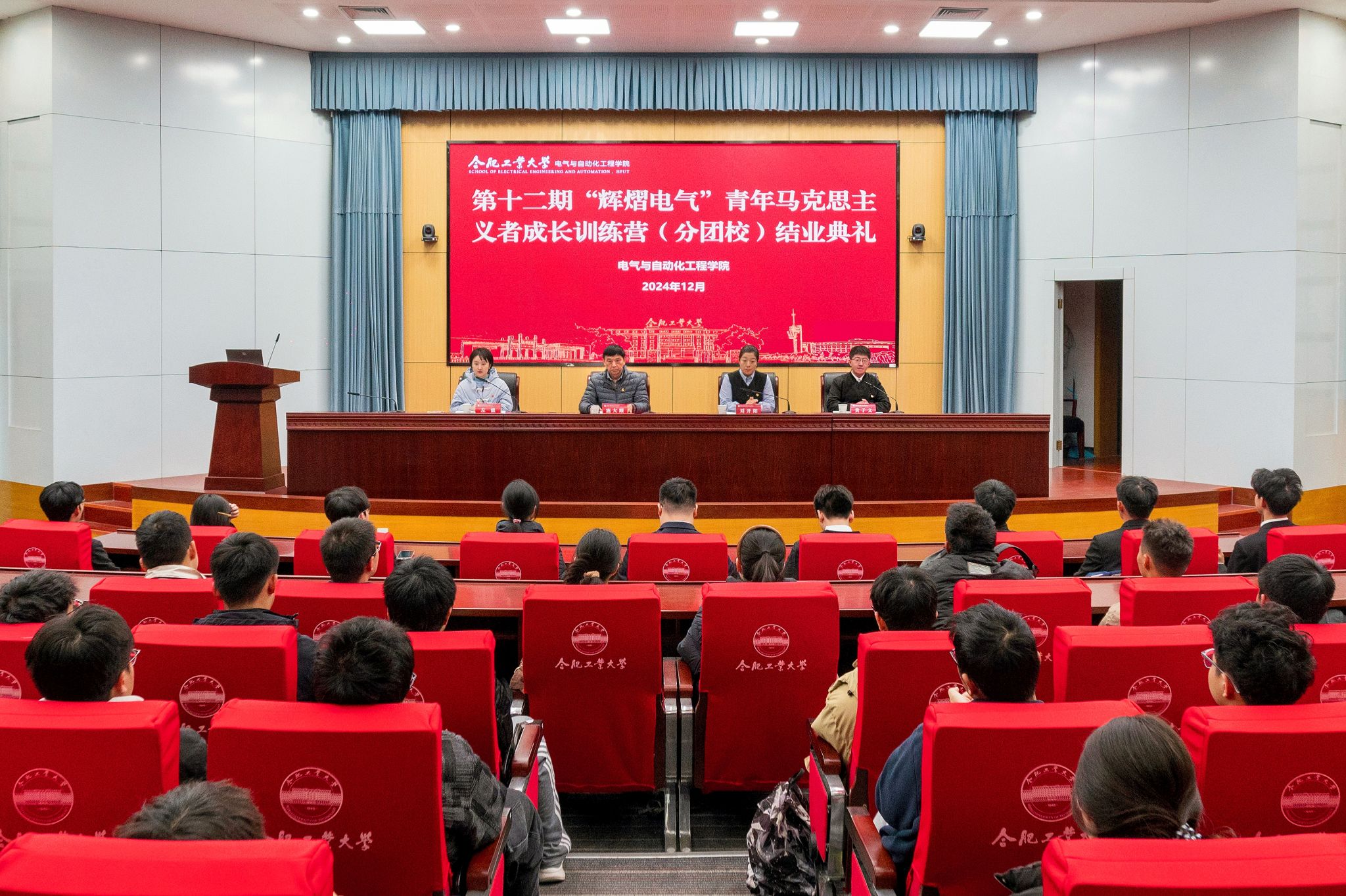 第十二期“辉熠电气”青年马克思主义者成长训练营(分团校)结业典礼在学术会议中心一楼大报告厅举行。学院副处级组织员施大顺、学工办主任兼团委书记刘开阳、学工办副主任兼团委副书记左能、分团校班主任及全体学员参加典礼。