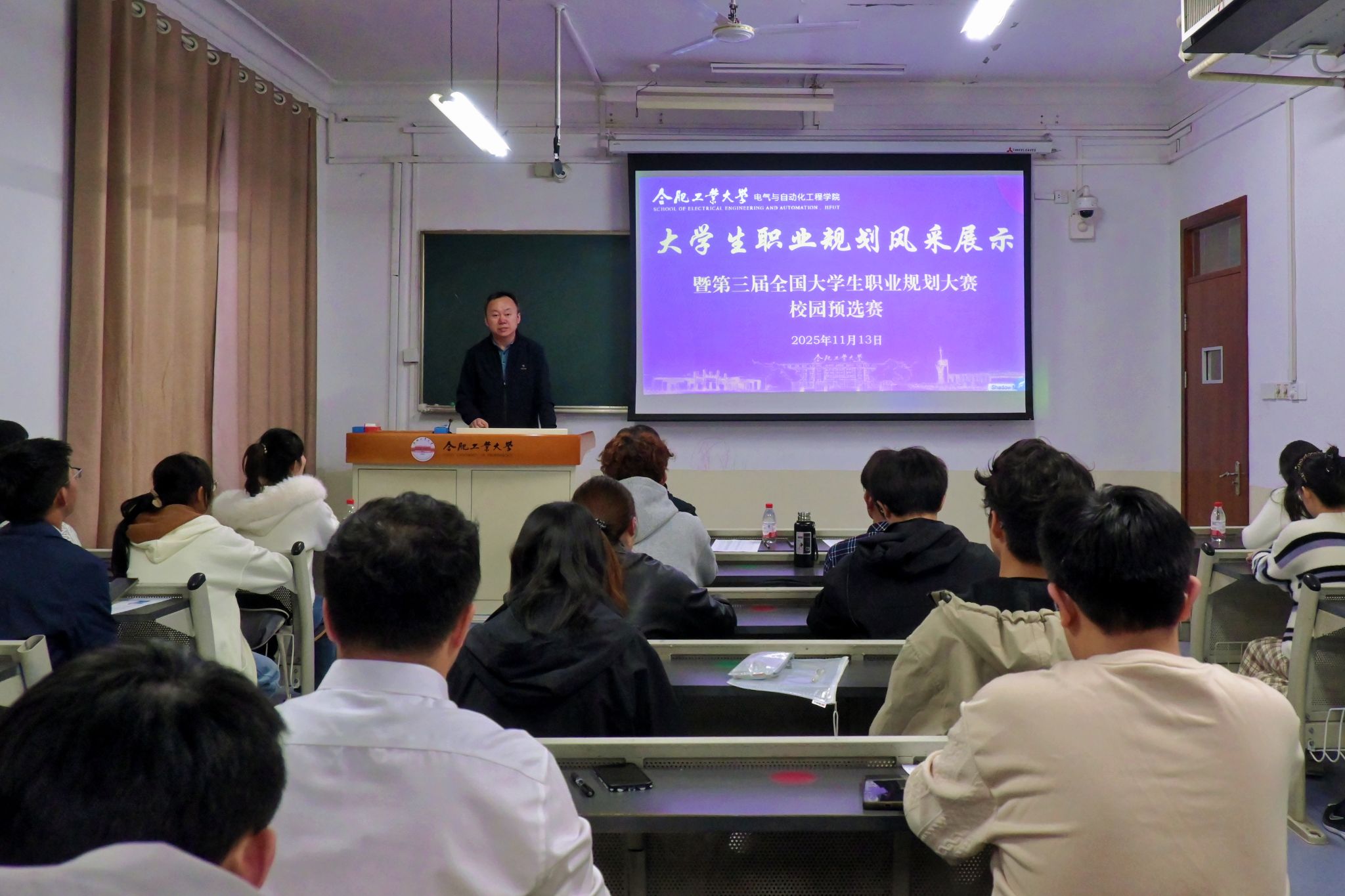 于主教学楼324教室举行2025年大学生职业规划大赛暨风采展示,学院相关负责人、各年级本研学生代表参与活动。