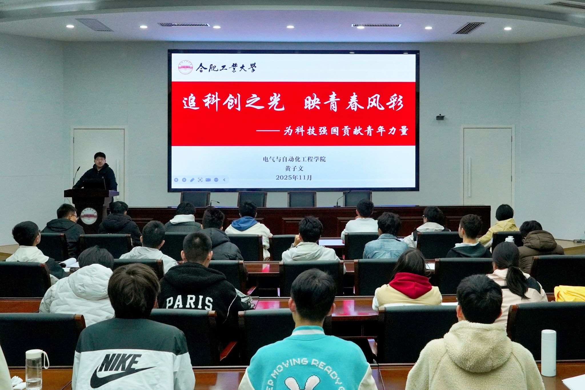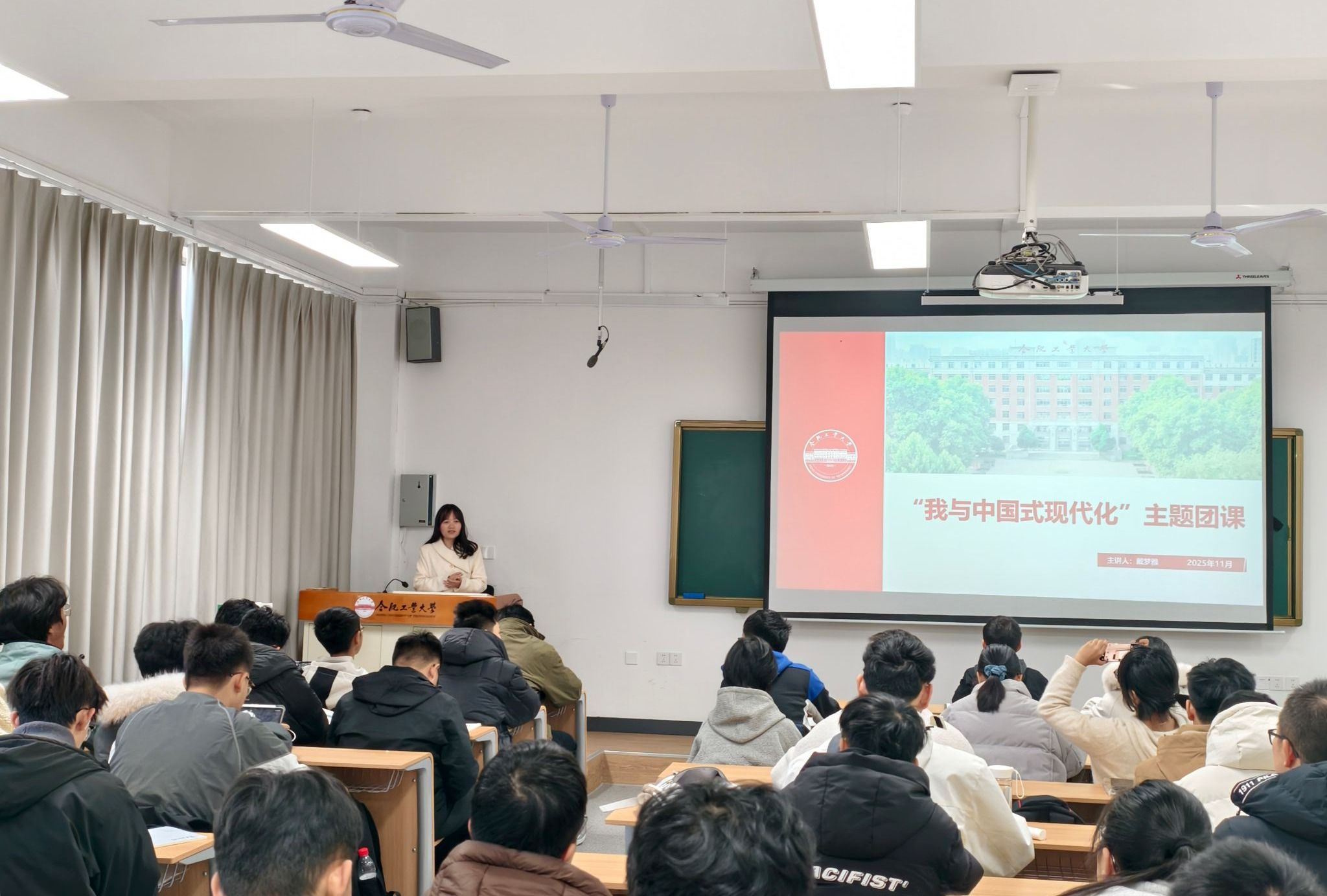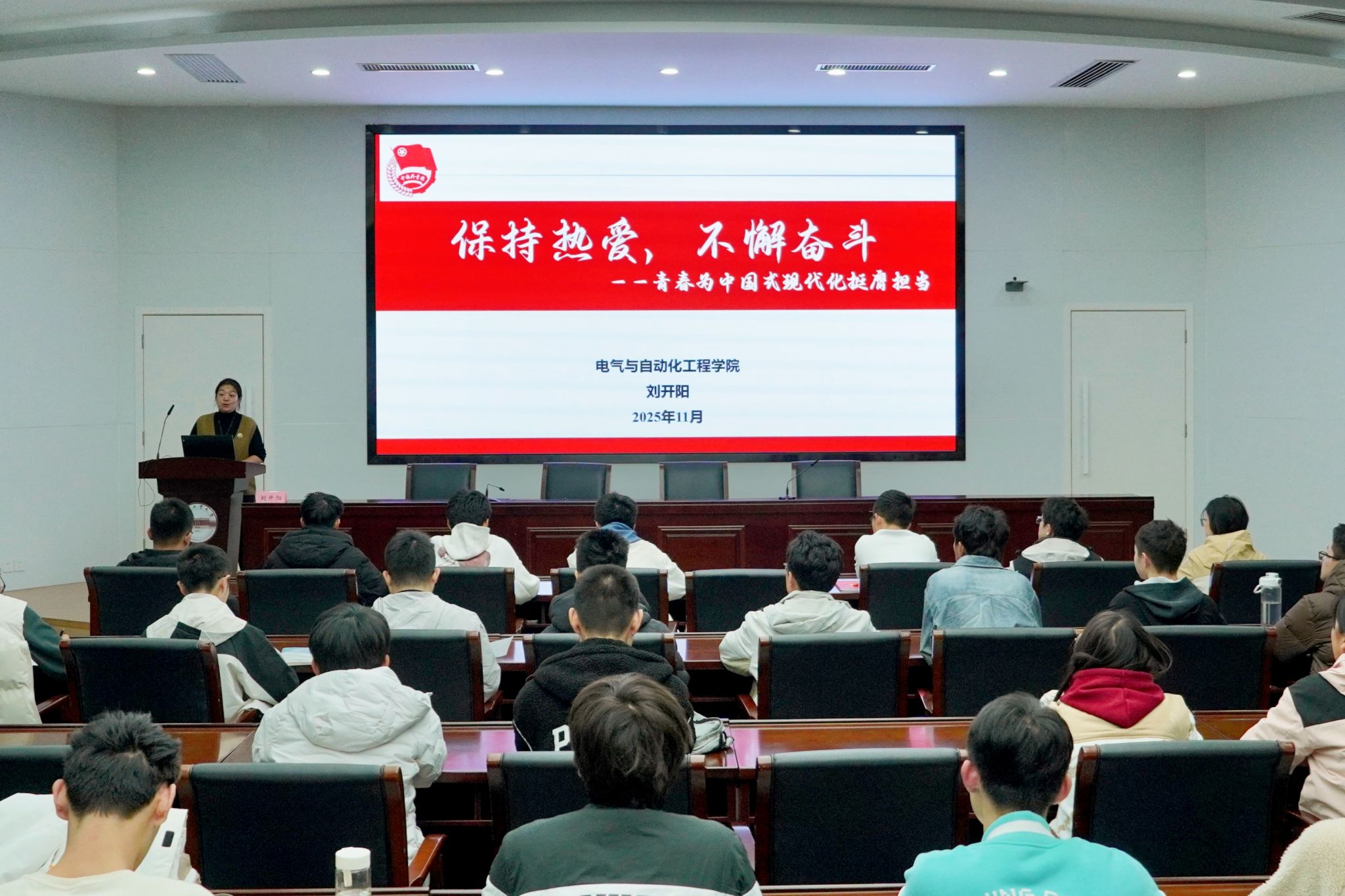 理论课程中,刘开阳与戴梦雅分别以《保持热爱,不懈奋斗——青春为中国式现代化挺膺担当》、《我与中国式现代话》为题为同学们讲授团课。两位老师从中国式现代化和和青年使命的角度为同学们解读了青年如何将个人发展融入中国式现代化伟大事业,为党和国家贡献青春力量。黄子文和马晓春分别以《追逐科创之光,映青春风采——为科技强国贡献青年力量》、《以爱为名,书写我们的时代答卷》为题讲授团课,分别从科技强国、工大担当、电气青年使命的角度追溯工大“工业报国”初心,结合电气优秀校友案例,引导学子规划成长路径,将学科优势转化为服务科技强国战略的实际力量。在理论课程学习环节,邀请了学院优秀毕业生顾天庆同学从个人发展的案例中,和大家分享电气学子应当如何锤炼本领、坚定初心、树立“工业报国”的远大志向。